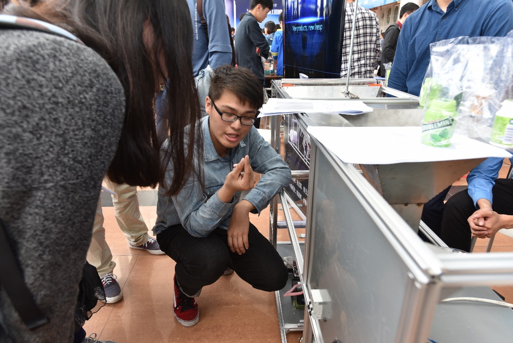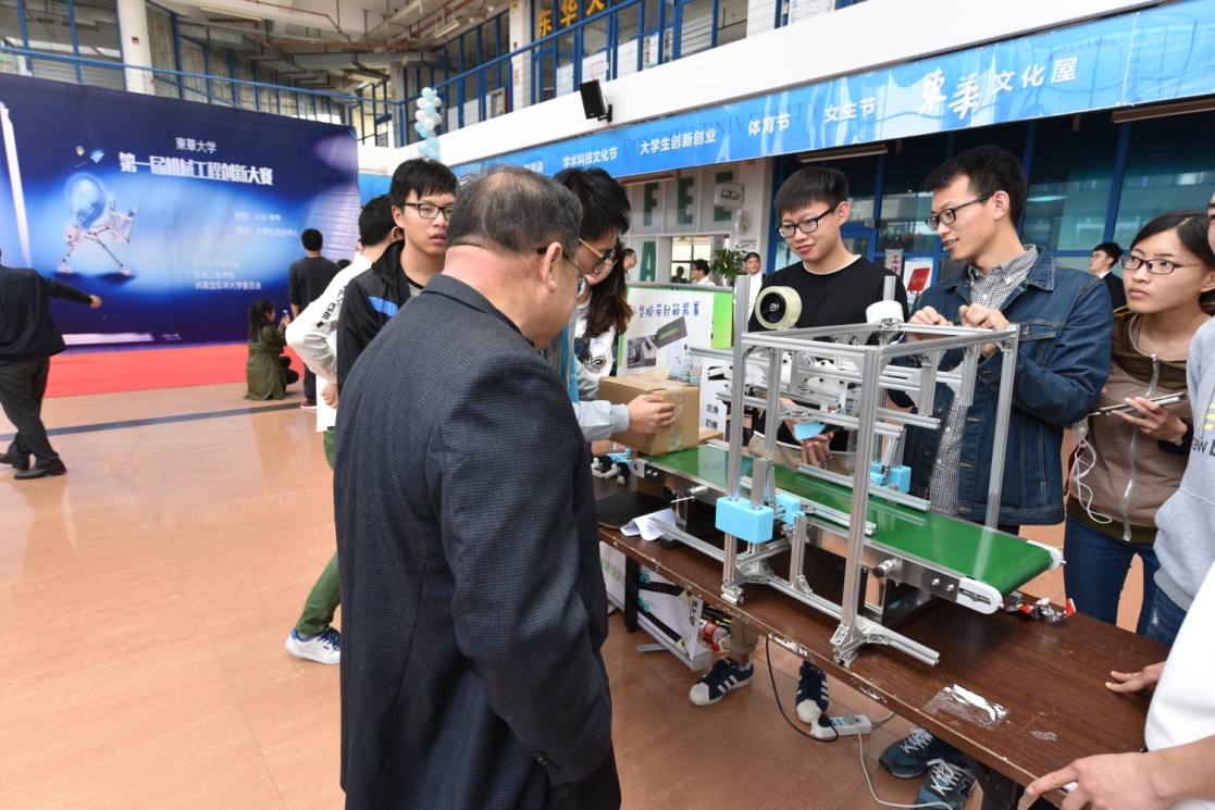 4月14日,首届太阳成tyc33455ccwww机械工程创新大赛在公司松江校区老员工活动中心拉开帷幕。该比赛由太阳成tyc33455ccwww教务处、太阳成tyc33455ccwww团委主办,太阳成tyc33455ccwww承办。出席此次大赛的嘉宾有太阳成tyc33455ccwww机械工程公司党总支书记朱英、太阳成tyc33455ccwww校团委书记张晓冬、太阳成tyc33455ccwww教学副经理徐洋、太阳成tyc33455ccwww机械工程公司党总支副书记张千里以及太阳成tyc33455ccwww教务处赵卫花老师等。比赛还邀请到太阳成tyc33455ccwww王生泽教授、毛立民教授、孙志宏教授等专业老师担任本次大赛的现场评委。参加本次大赛的共有23个小组,同时现场还邀请了2015年上海市机械创新设计大赛一等奖作品参与展示。活动吸引了数百名同学前来参观学习。