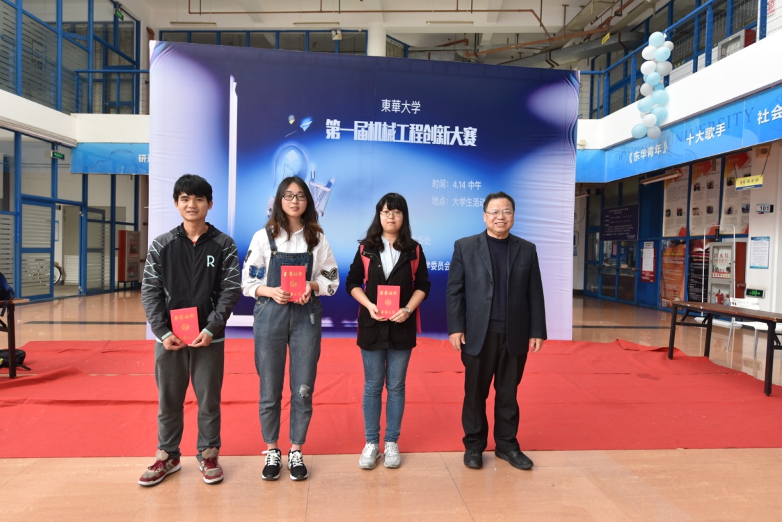 展示环节结束后,评委老师根据现场的评比和问辩情况进行了激烈的讨论。在等待结果的过程中,毛立民教授致总结陈词,充分肯定了同学们对本次大赛的积极参与,鼓励同学们从这次创新实践过程中摸索经验、寻求方法,在今后的学习中注重创新能力的培养,为成为创新型人才做好积累、夯实基础。比赛最后,充气保护式贵重易碎物品封箱机、小型自动硬币清分机、多用途硬币分拣机获一等奖,并评定二等奖和三等奖共12名,以及优秀奖若干(比赛结果请见附件)。前15名比赛获奖选手将被推荐至2016年上海市创新设计大赛,并角逐国家机械工程创新大赛的参赛资格。