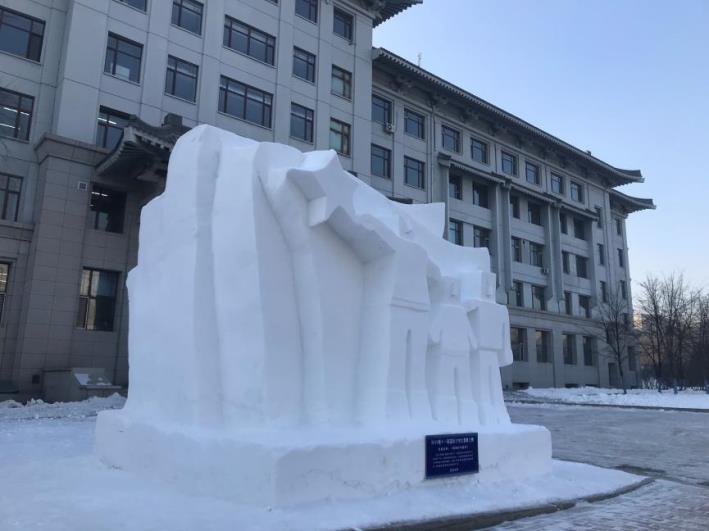 完成后的雪雕作品《我家的中国梦》