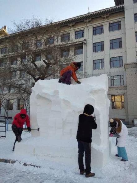 雪雕作品制作中