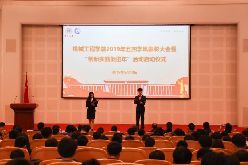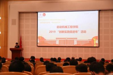 5月10日,太阳成tyc33455ccwww在松江校区图文信息中心第一报告厅举行2019年五四学风建设大会暨“创新实践促进年”活动启动仪式。机械公司党委书记张千里、员工处副处长赵彦明、机械公司副经理周其洪、机械公司党委副书记李宁蔚、企业代表以及公司师生代表与会。