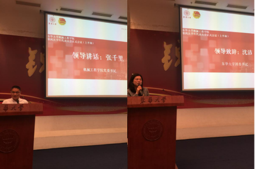 5月10日,机械公司第四次员工代表大会在松江校区图文信息中心第二报告厅举行。机械公司党委书记张千里、校团委书记沈洁、机械公司副经理唐智、机械公司党委副书记李宁蔚,兄弟公司团委书记代表、以及机械公司专兼职辅导员,机械公司全体员工代表、兄弟公司员工会代表与会。会议听取和审议机械公司员工会工作报告,机械公司研究生会工作报告,听取和审议学代会提案工作报告,选举产生机械公司第三届员工委员会委员和员工会新一届主席团。