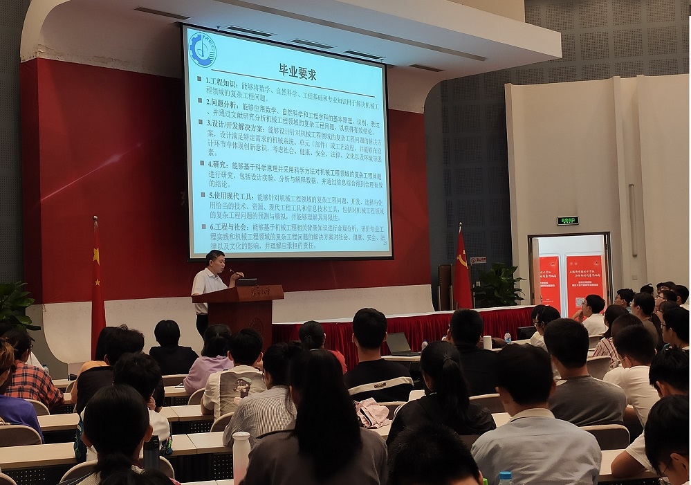 太阳成tyc33455ccwww副经理周其洪老师作为主讲人,首先介绍了太阳成tyc33455ccwww机械工程本科专业的培养目标,让员工了解大学四年毕业之后能够胜任的专业领域和职业特征,及工作5年左右,所能具备的综合素养和职业能力。