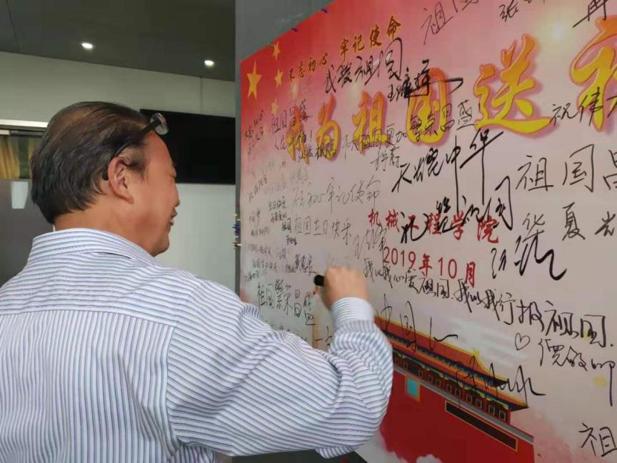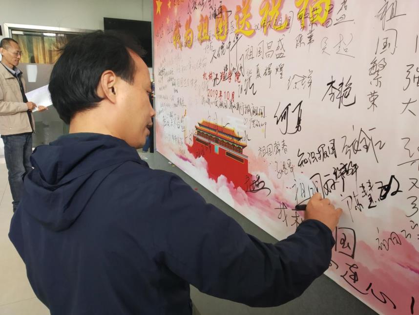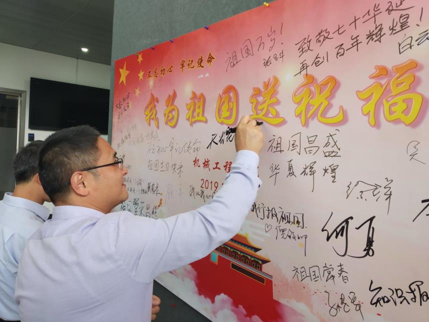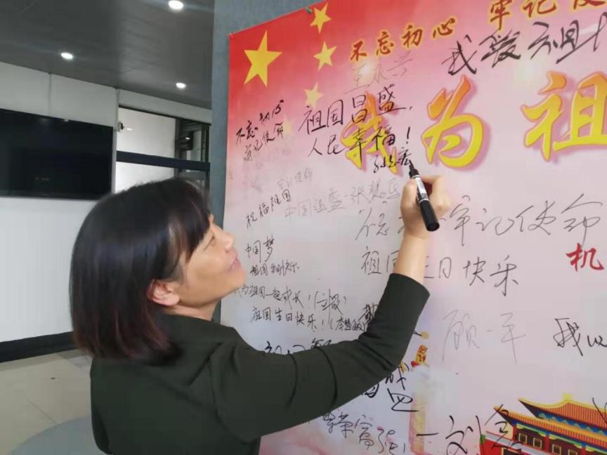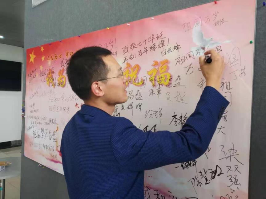 参加本次活动的老师,有现任公司领导,也有卸任的公司领导;有在职的老师,也有已经退休的老师。激情心头涌,敬意笔尖流,在三个小时的时间里,大家将祝福墙壁写得满满当当,将对祖国的祝福与赞美表达得淋漓尽致。