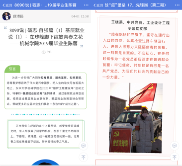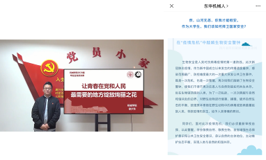 线上“三会一课”结合每月一主题持续开展,充分发挥员工党支部“战疫堡垒”的先锋模范作用。开展“让青春在党和人民最需要的地方绽放绚丽之花”毕业“云党课”,号召毕业班员工党员做弘扬爱国主义的践行者。员工党支部书记带头录制“微党课”,向同学们宣讲疫情防控中的感人故事、英雄人物以及大国作为。