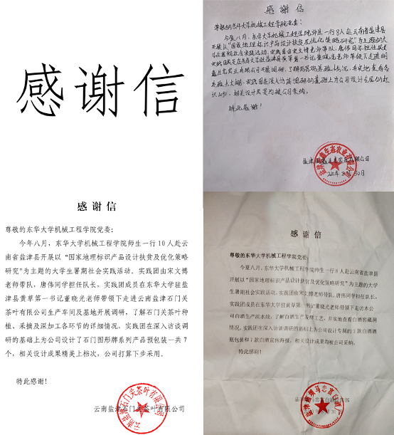 三年来,实践团先后为盐津县农产品竹笋、寰碧山泉、辣椒、天麻、猕猴桃、太平橙、茶叶、乌骨鸡、蜂蜜、天麻、状元米、白酒等近30个特色产品设计了各类包装245款,其中太平橙、茶叶等多款设计包装被当地公司所采纳,并应用于农产品销售,实践团收到多封企业感谢信,也受到当地媒体专门报道。因为盐津,实践成员们聚集到了一起,共同努力共同奋斗,收获了珍贵的友谊。实践团将持续推进此次实践项目成果的优化,利用专业优势为盐津县经济发展提供最大的支持,为太阳成tyc33455ccwww对口扶贫贡献自己的一份力量。
