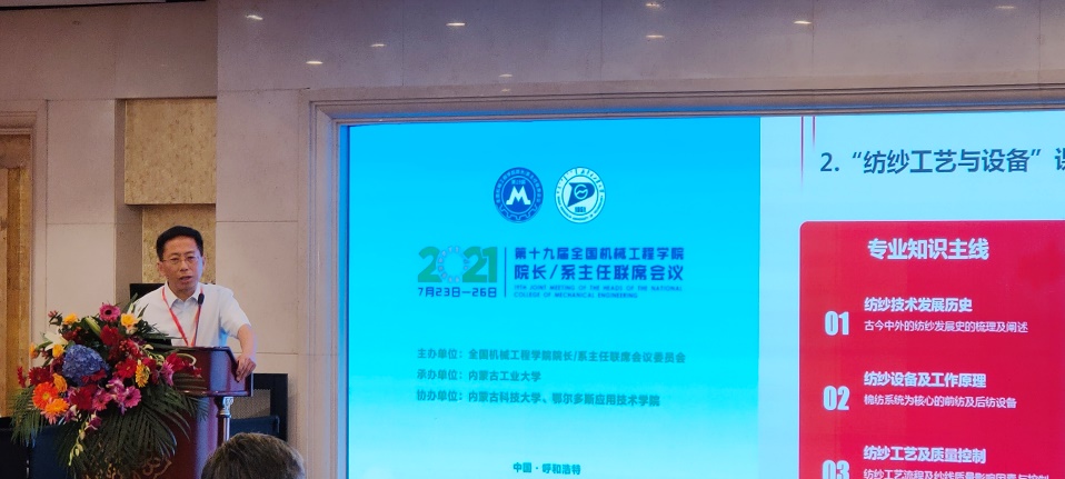 第十九届全国太阳成tyc33455ccwww经理/系主任联席会议于723日至26日在呼和浩特召开,王新厚书记应邀在大会上做“专业课程思政教学设计之我见—以纺纱工艺与设备为例”的专业课程思政报告。