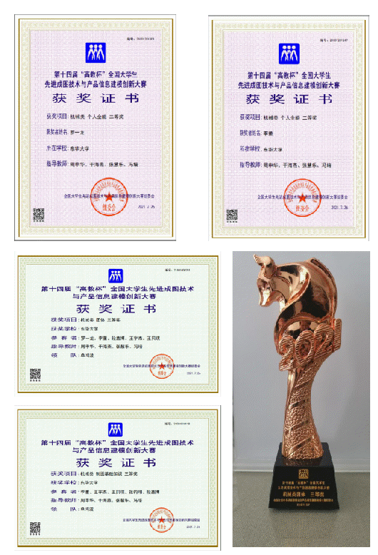 机械类团体三等奖:罗一龙、李董、段鑫博、王宇杰、王贝琪