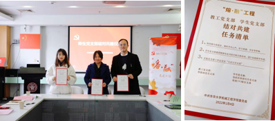 随后,为充分拓展师生支部“共赢共进共成长”的局面,师生党支部开展结对共建仪式,共同签署结对任务清单,后续将密切组织联学共建活动,有效推动教工党员倾听员工心声,给予思想、学业等帮助,推动基层党建、师德师风、育人工作同向同行。