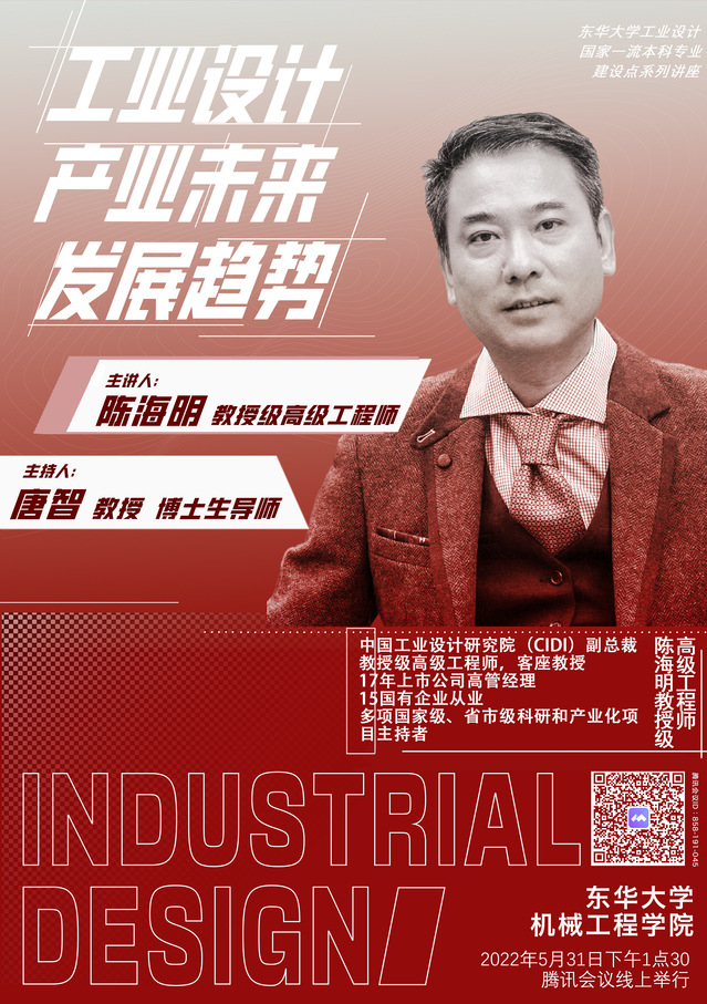 陈海明:现任中国工业设计研究院(CIDI)副总裁,教授级高级工程师,客座教授。17年上市公司高管经历,15年国有企业从业经验。曾主持多项国家级与省市级的政府、科研和产业化项目,并担任多家产业研究院专家顾问。曾获上海市劳动模范,拥有6项国家发明专利、27项实用新型专利、43项外观专利。
