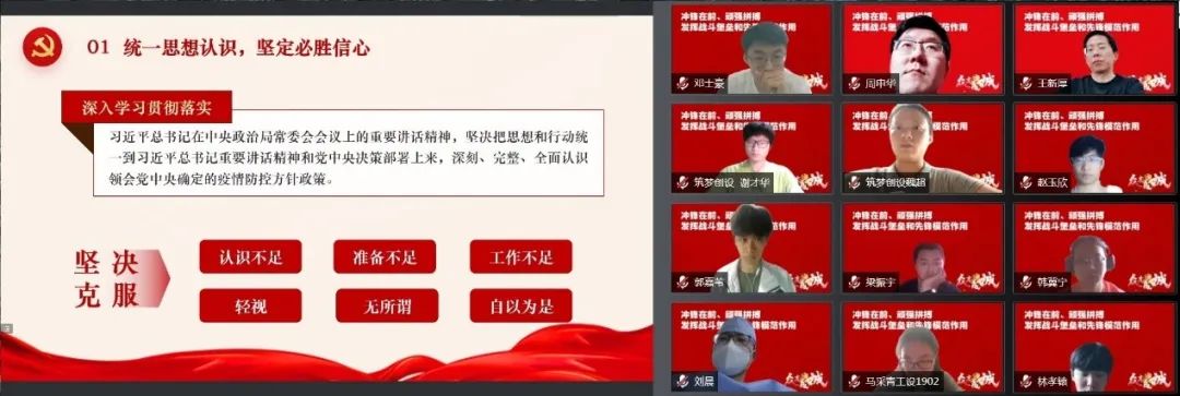 公司党委第一时间要求各教工党支部与员工党支部结对联学,坚决把思想和行动统一到习近平总书记重要讲话精神和党中央的决策部署上来,落实市委工作要求,坚定必胜信心,发动每一名党员当好宣传员、示范者、贴心人,全力打赢大上海保卫战。
