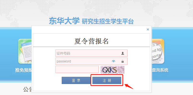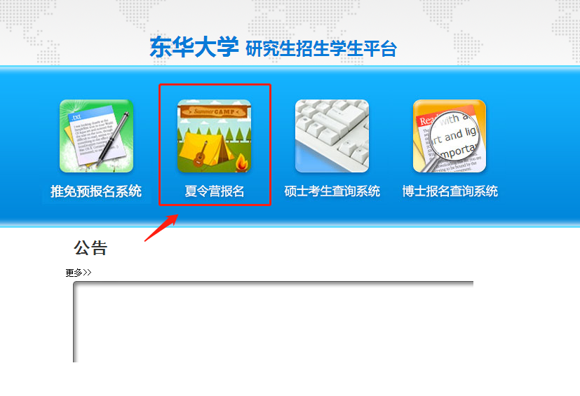 一、登录太阳成tyc33455ccwww研究生招生员工平台(https://yzks.dhu.edu.cn/) 、选择并点击“夏令营报名”。(平台开放时间:工作日9:00-16:00)