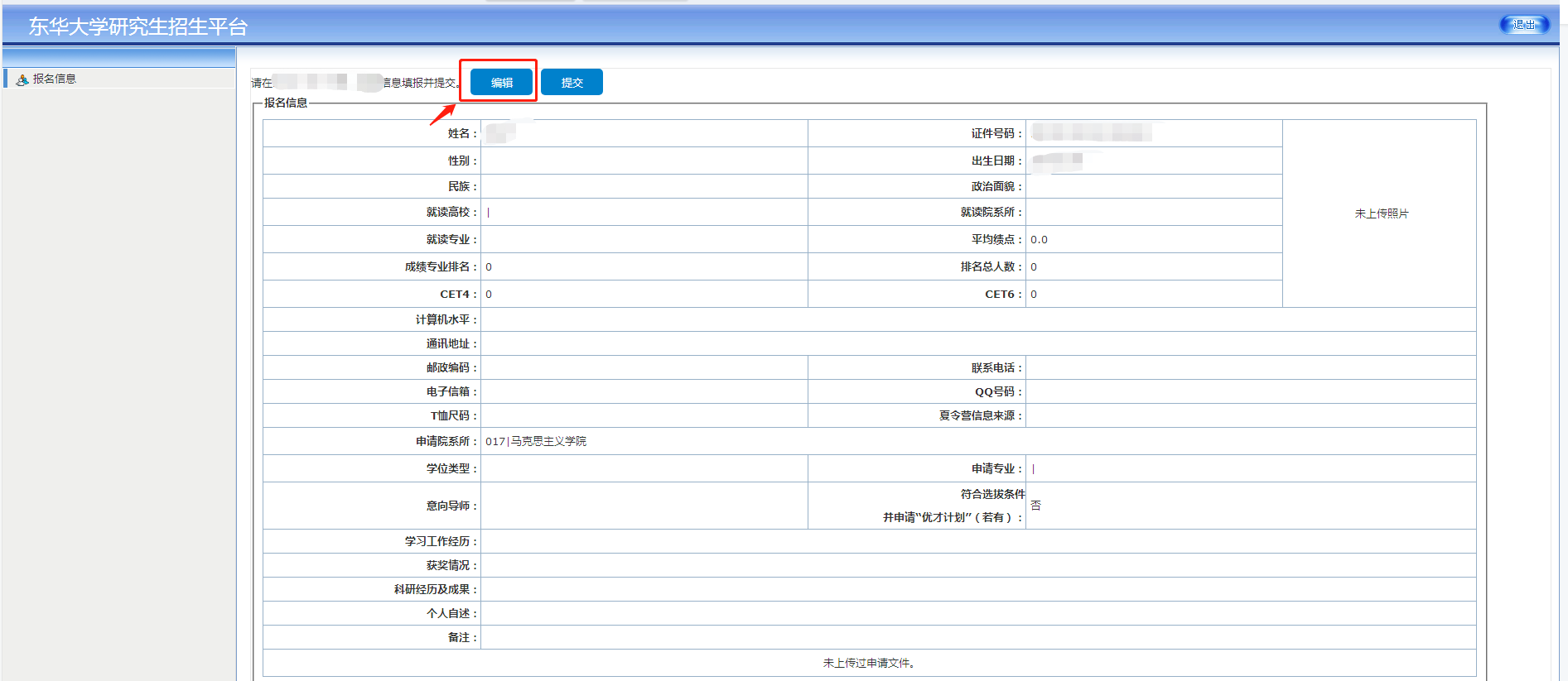 登录后,点击编辑,完善报名信息。