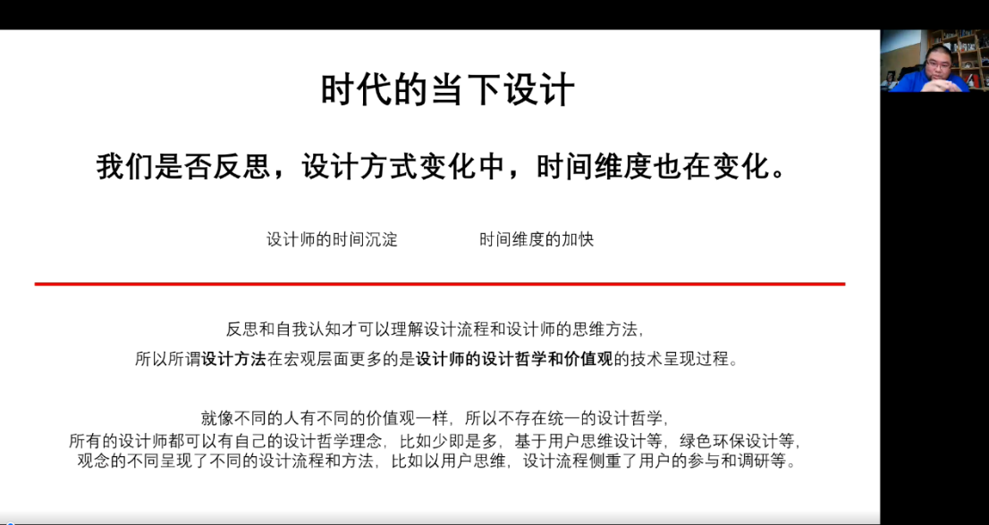 工业设计师李铁彬先生分享了自己创业与进行相关落地设计项目的经历及对设计流程与设计方法的一些见解,利用案例对设计流程与设计方法进行讲解,点明了目前设计就业与设计师需求的矛盾,他从当代设计与十年前的设计进行比较,畅想了未来设计的发展方向,介绍了人工智能对于设计的意义,也对同学们的疑问进行了详细的解答。