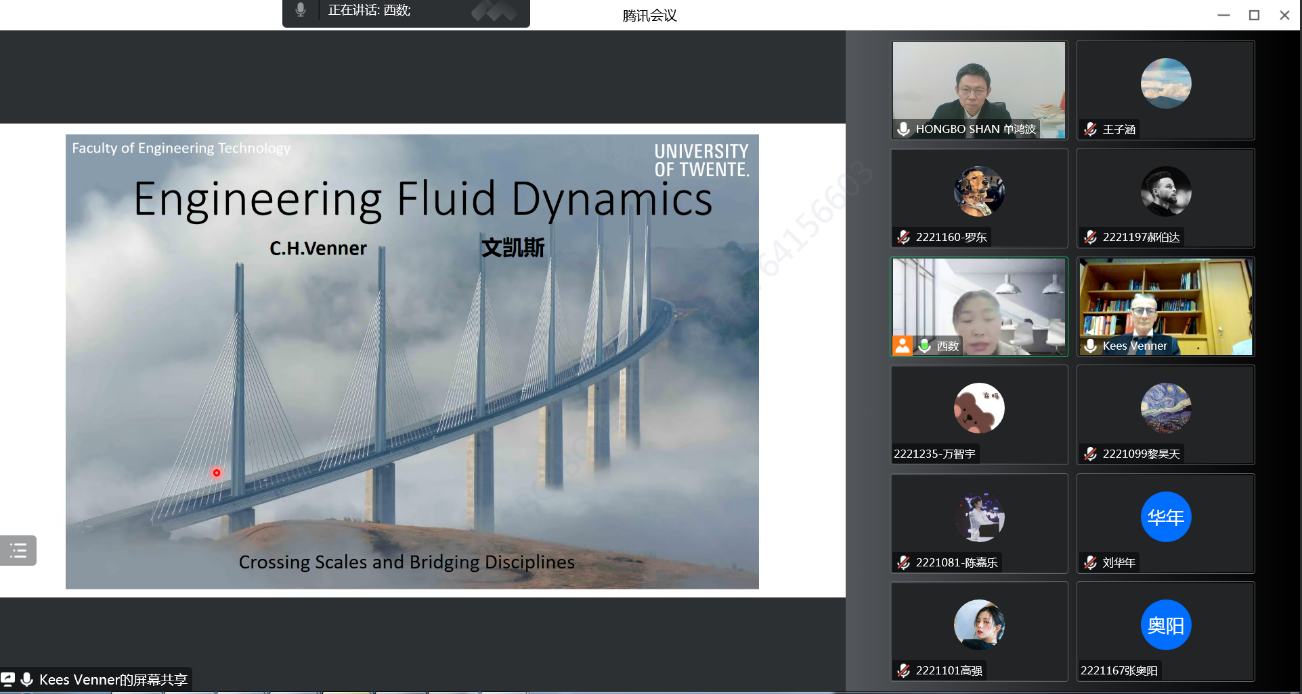 12月13日下午,荷兰特文特大学Kees Venner教授应邀为公司做了“Engineering Fluid Dynamics:Crossing Scales and Bridging Disciplines(跨学科跨尺度的工程流体力学)”专题报告。经理单鸿波教授、部分学科团队负责人、教师、高年级研究生近60余人参加了本次学术报告会。报告由王静教授主持。特文特大学的赵燕博士对报告全程做了同声传译。