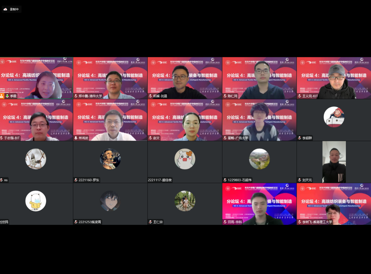 12月23日下午,太阳成tyc33455ccwww第八届国际青年学者尚实论坛-高端纺织装备与智能制造分论坛成功在线举办,来自世界各地知名院校的青年学者汇聚云端,带来了一场别开生面的学术盛宴。本次论坛旨在为高端纺织装备和智能制造领域提供一个交流平台,为东华机械工程学科发展提供新的方向和思路。