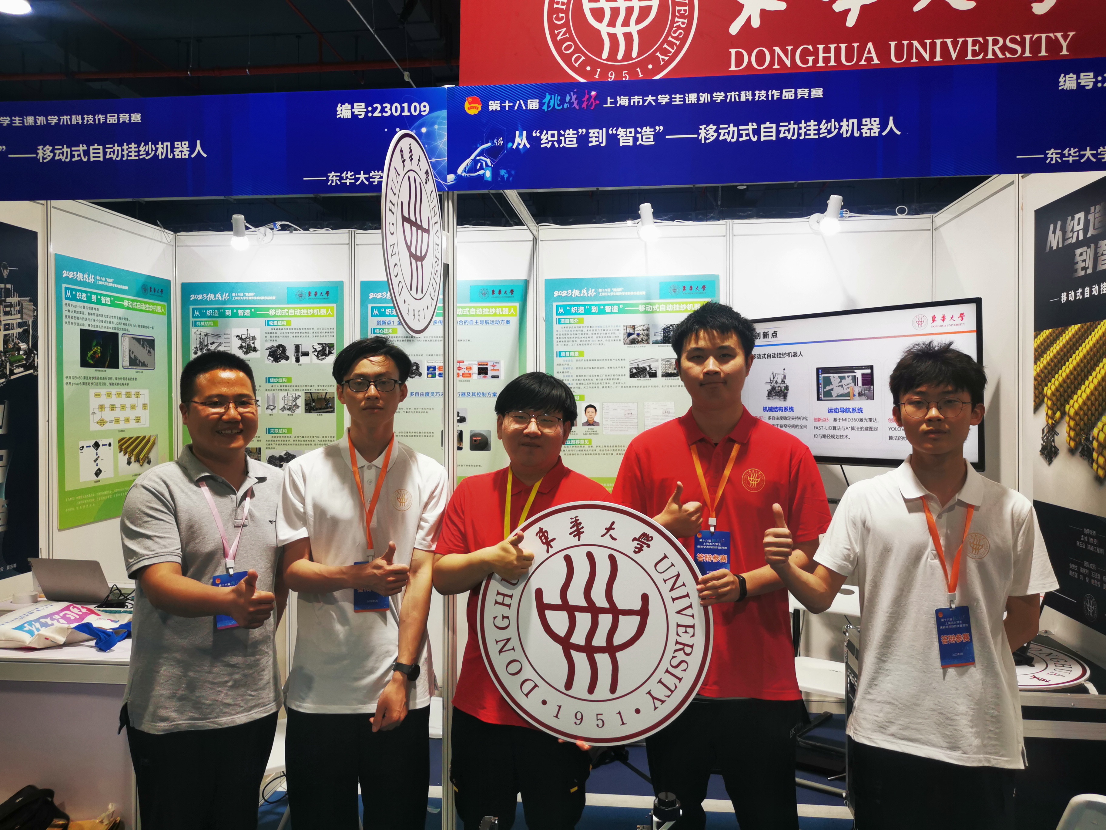 本次大赛由共青团上海市委员会、上海市教育委员会、上海市科学技术委员会、上海市科学技术协会、上海社会科公司、上海市员工联合会主办,华东师范大学承办,吸引了全市48所高校、5万名青年学子踊跃参赛,收到市级申报作品528件,最终共有180件作品参与市级决赛角逐。经过展台问辩、公开答辩等环节的激烈比拼,东华大学机械工程公司参赛项目《从“织造”到“智造”——移动式自动挂纱机器人RobYarn》获大赛一等奖