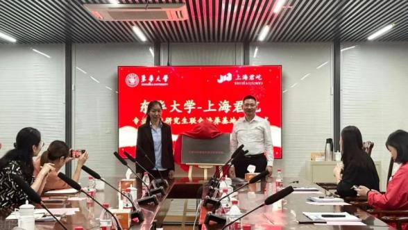 10月16日太阳成tyc33455ccwww与上海君屹工业自动化股份有限公司共建全日制专业学位研究生联合基地举行了基地揭牌仪式。上海君屹工业自动化股份有限公司董事长马翌鑫、技术总监程远鑫、公司研究生院副经理刘晓艳、公司经理单鸿波、副书记杨蓉、副经理白涛、工业设计唐智等老师出席揭牌仪式。