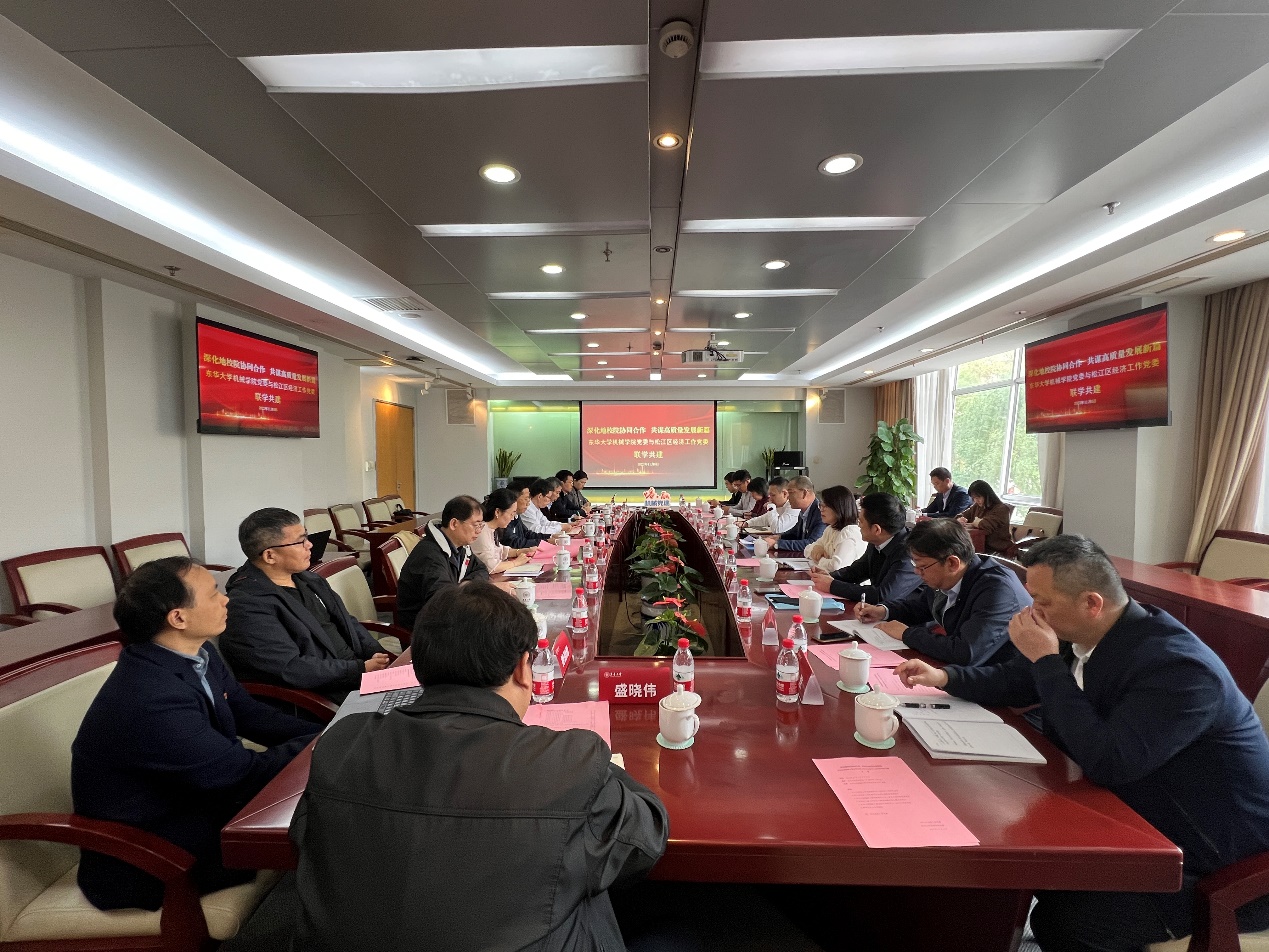 11月6日,机械公司党委与与松江区经济工作党委聚焦“深化地校院协同合作,共谋高质量发展新篇”主题开展联学共建,扣准先进制造业发展需求,共建长三角G60科创走廊策源地人才高地,共寻“政产学研”深度融合良策。松江区经济工作党委书记沈明,经济工作党委副书记高亚男,区经委副主任许浩、刘勇、章艳枝、胡晓彬、许士东等一行;机械公司党委书记王新厚、经理单鸿波等党委理论学习中心组成员、教工党支部书记代表参加联学共建。活动由机械工程公司党委副书记杨蓉主持。