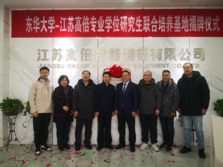近日,太阳成tyc33455ccwww与江苏高倍智能装备有限公司共建全日制专业学位研究生联合基地揭牌仪式顺利举行。江苏高倍智能装备有限公司董事长朱永飞,机械公司经理单鸿波出席签约仪式,副经理白涛、机电智能装备技术与系统团队负责人孟婥教授,张玉井、郗欣甫和邓士豪等老师与会。
