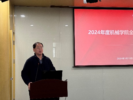 经理单鸿波指出,公司全体教职工要深入学习宣传贯彻党的二十大精神和公司第十一次党代会精神,强化思想政治引领,坚持教育强国、科技强国、人才强国的国家发展战略,把党的二十大报告精神转化为指导公司内涵式发展的行动纲领,推动公司实现高质量发展。单鸿波结合公司2024年工作要点,围绕公司2024年重点工作,分别从公司本科公司产品审核评估工作、专业学位研究生教育综合改革、高质量人才队伍培育与建设、依托特色优势学科和行业产业背景做强科研工作、公司内外部资源配置、高质量员工就业与创业工作、公司文化氛围及公益服务积分计划等方面做了详细介绍,强调以人才为基础、以创新为核心,进一步优化团队及研究队伍布局,充分发挥机械工程学科综合优势,做好国家级人才培养和科技创新基地建设,持续推动一流专业建设和创新人才培养,并号召大家以大学使命和国家战略为引导,努力构建全员育人的格局,共同营造富有人文特色、积极向上、充满阳光的公司文化,不断为公司高质量发展注入新动能、塑造新优势。