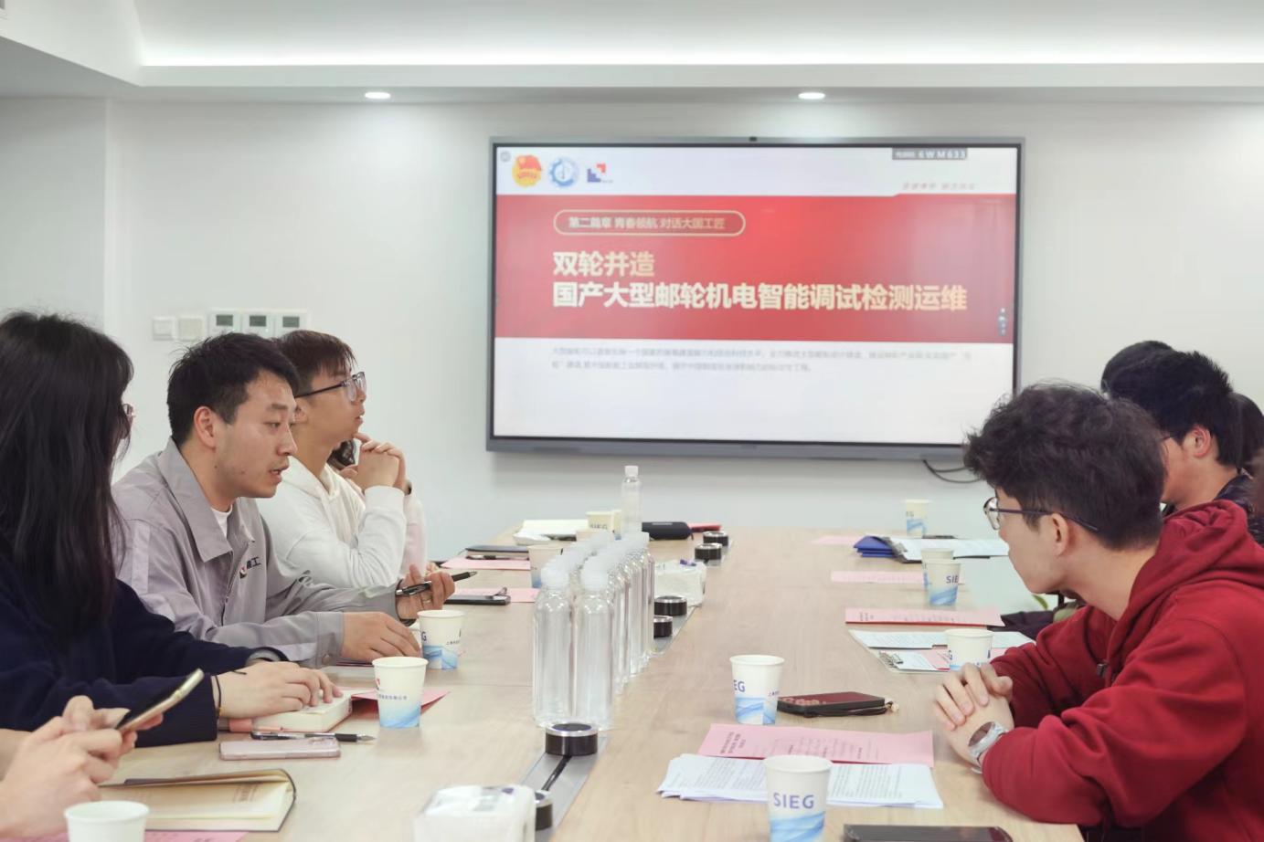 机械公司团委以“‘面对面’学习‘新质生产力’,产业一线对话‘大国工匠’”为主题开展了一场别开生面的示范性主题团日活动,组织公司青年学子在产业一线来了一场 “团学”与“团青”的青年对话,面对面共话新质生产力的前沿应用。来自上海建工安装集团调试检测中心、工业事业部和第三工程公司的三位工程师代表,分别结合自身参与国产首艘大型邮轮、硬X射线自由电子激光装置以及上海大歌剧院建造项目的经历,向机械公司青年学子阐述了所在团队攻坚克难、“啃硬骨头”的奋斗历程。机械公司员工代表也结合身边的科创故事、典型人物开展主题宣讲,阐释了东华人砥砺科研报国的创新精神。