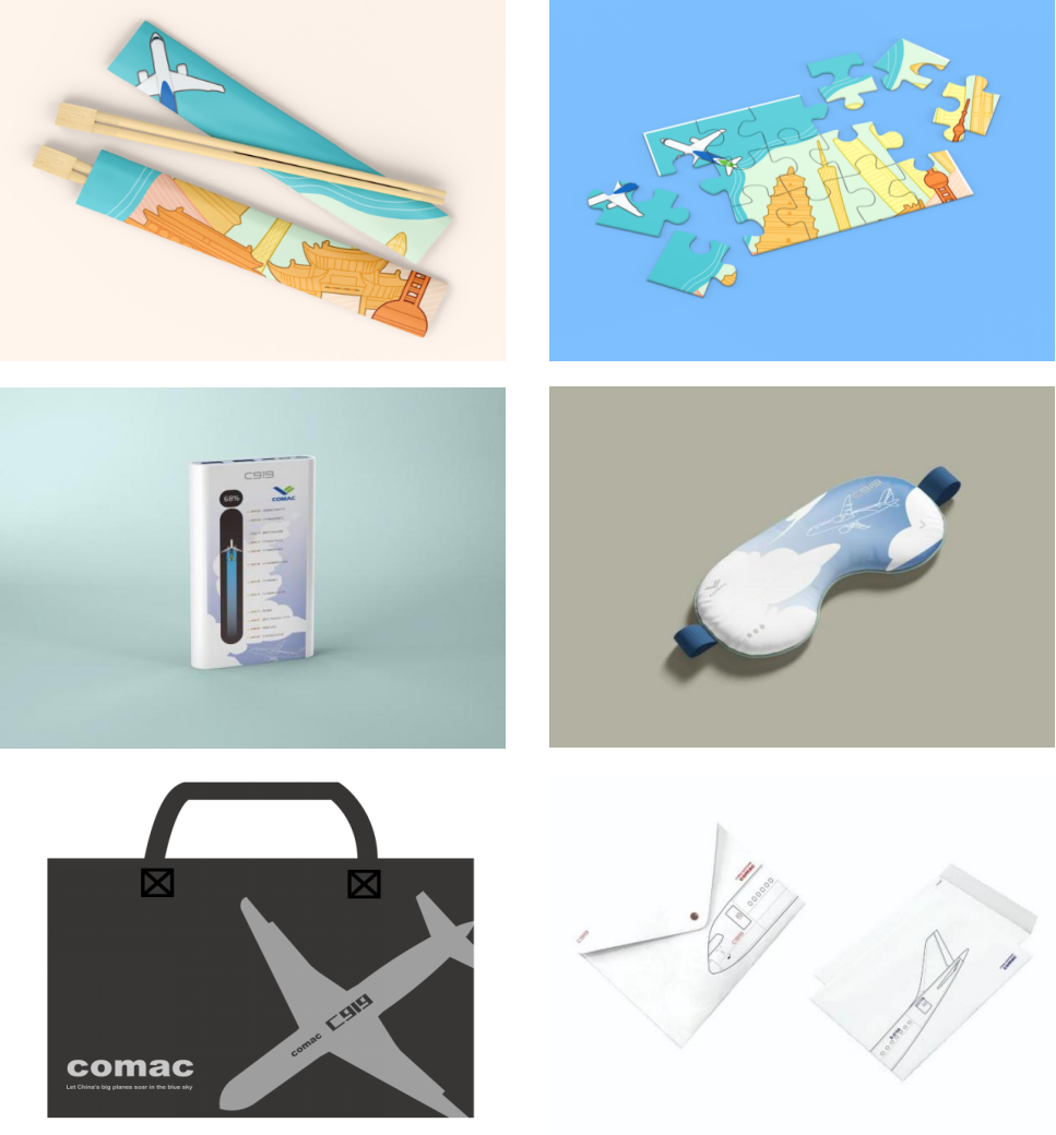 实践团在实习期间推出了一系列面向不同受众群体的文创产品。针对成年人市场设计开发“青空之梦”系列如眼罩,颈枕等,适宜出行携带,保障“舒适度”的同时增加了美感;“碧水青天”系列产品,如表盘,口罩,手机壳等,助力人们在繁忙与压力之余,能在这片蔚蓝中找到心灵的慰藉,重燃探索未知的勇气与热情。针对儿童群体,实践团成员设计了一系列寓教于乐的文创产品:“翱翔”拼图、“飞上云霄”积木,增强了趣味性,保留了创意性。在上飞院的支持下,实践成果得以在更广阔的舞台上绽放,让更多人感受到航空的独特魅力与无限可能。