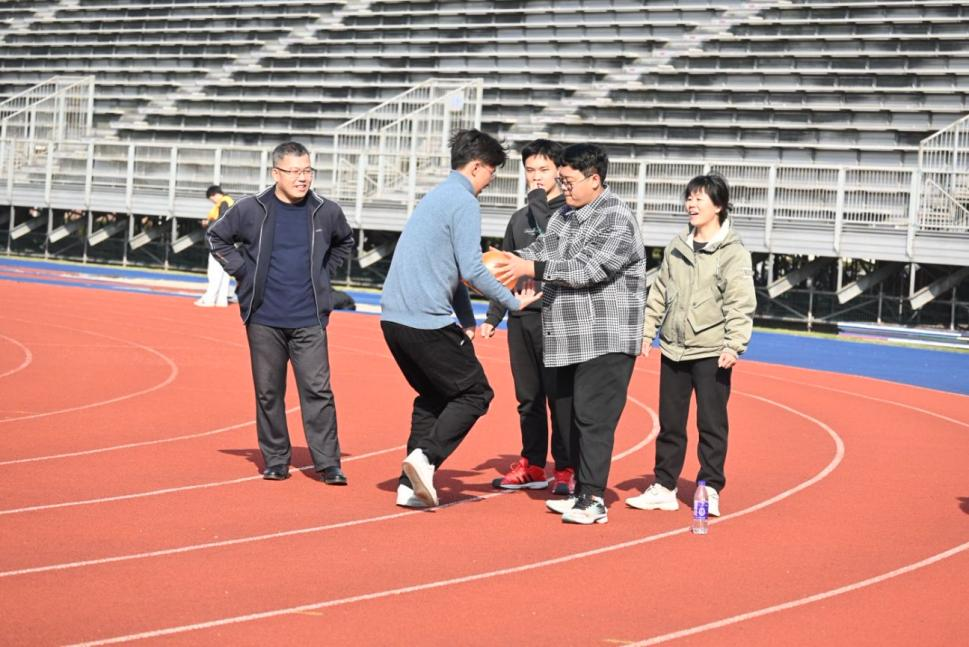 赛事结束后,进行了赛后拉伸,为运动员们提供了放松和恢复的时间。随后,颁奖环节在热烈的掌声中进行,王新厚为获奖团队颁奖,并高度评价了参赛师生的积极参与和出色表现,强调了团队精神和导学情谊的珍贵。