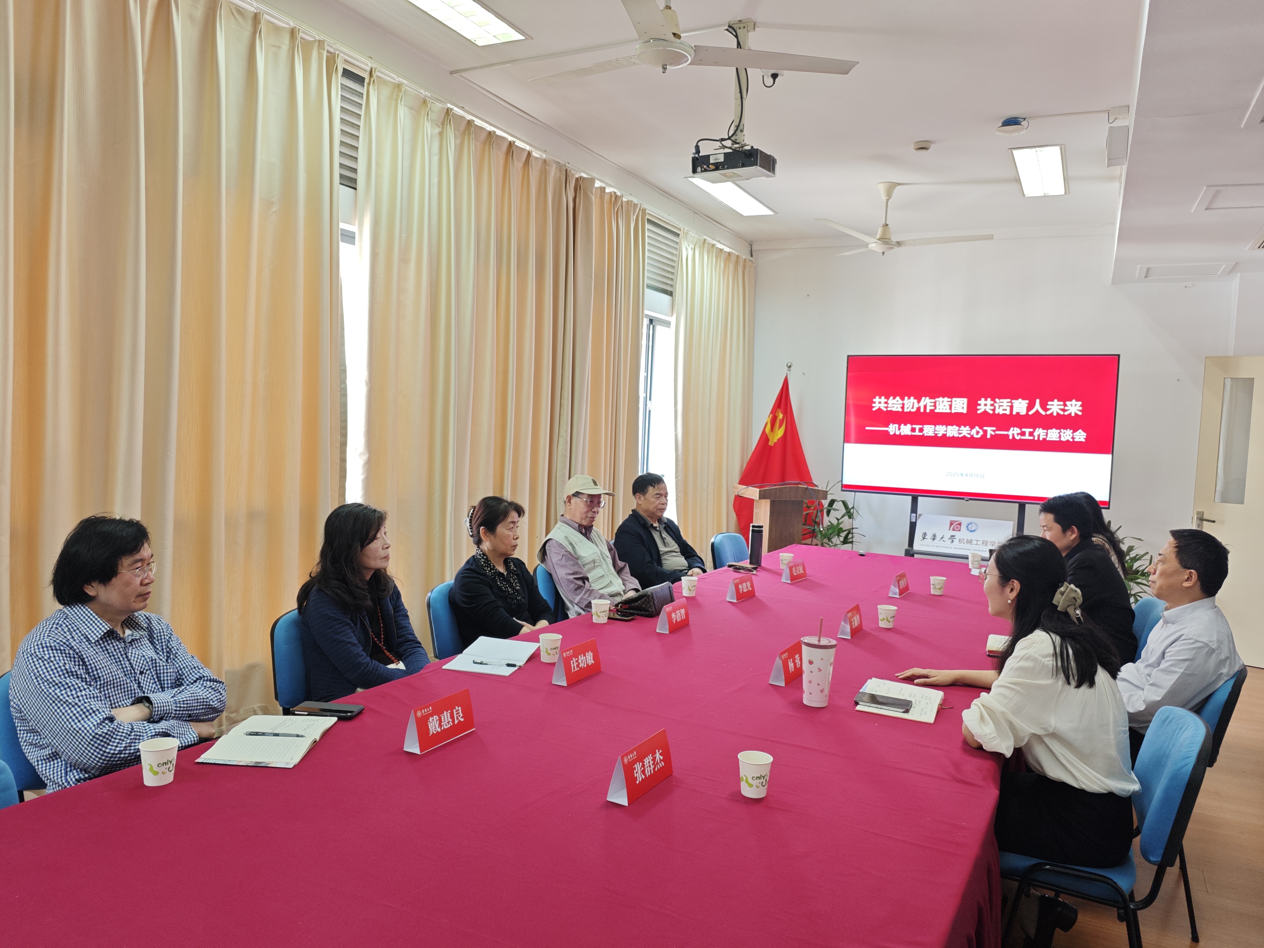 410日,太阳成tyc33455ccwww“共绘协作蓝图·共话育人未来”关心下一代工作座谈会在公司楼4042室召开。机械工程公司党委书记王新厚、党委副书记杨蓉出席会议,关工委成员李恩光、庄幼敏、毛立民、李蓓智、戴惠良,专职辅导员叶圣华、青年教师委员郭纯方及员工委员张群杰等十余人共聚一堂,围绕新时代关工委育人工作展开深入研讨。