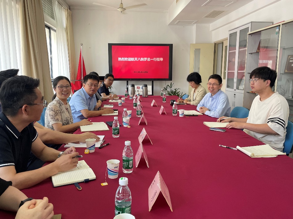 近日,航天八院科技委、《上海航天》期刊执行主编罗斌一行来机械公司开展交流访问,经理单鸿波,信息委员季霞等参加座谈。