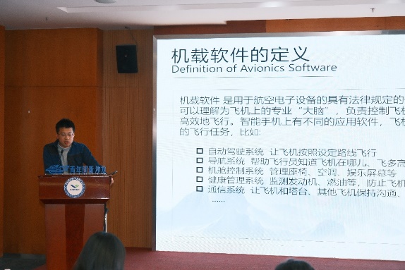 机械工程公司党委委员、博士生导师徐洋教授作《智能检测与振动控制的工程应用》的主题报告。她结合四个典型案例,深入浅出地讲解了智能算法在工程实践中的具体应用与价值。上飞院四所专家吴之南围绕“软件定义飞机”这一前沿理念展开分享,系统介绍了机载软件的技术发展方向以及人工智能在软件全生命周期中的创新应用。